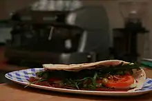 Entre los platos presentes principalmente en Borgo Maggiore, es común la llamada piada o piadina (pan plano típico de toda la región histórica de Romaña), consumido a veces de manera parecida a la spanakopita griega, salvo porque va en el típico pan plano de la zona llamado piadina y emplea mozzarella en lugar de feta, además puede incluir escarola en lugar de espinaca.