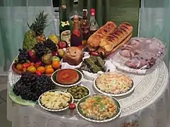 En Venezuela, es común consumir platos preparados con pescado salado o chigüire (capibara) en Semana Santa, antiguamente también se consumía pastel de morrocoy, aun cuando el Morrocoy (chelonoidis carbonaria) posee una veda indefinida, cuya caza está prohibida desde 1979. En Navidad la mesa navideña suele tener hallacas, bollos, pernil de cerdo, pan de jamón, ensalada de gallina y dulce de lechosa, higos, icacos, toronja, merey (marañón), entre otros.