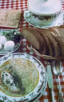 - Bakla ash, una sopa hecha de guisantes o judías verdes, un plato inusual en la cultura tártara predominantemente carnívora.