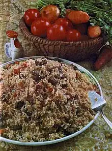 El bäliş es el plato tradicional más antiguo que combina carne y cereal. Trozos se carne grasa (añojo, buey, ganso, o asadura de ganso y pato) se combinan con cereales (mijo, espelta, arroz) y se hornean en una cazuela de barro. El tutırma, una tripa rellna con hígado cortado o picado finamente y mijo o arroz, es otro ejemplo de combinación de carne y grano.