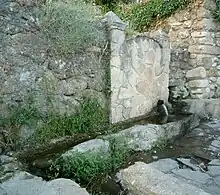 Entre las fuentes dignas de mención destaca la denominada de «El Chorro» situada frente al costado del evangelio de la Iglesia Parroquial, presenta un frontal de sillería de granito y el escudo de armas de Carlos I. El emperador Carlos I sustituye el escudo de la localidad, formado por una gata sentada bajo la cruz de Alcántara, por el escudo de Carlos I. Una fiel réplica de este escudo se encuentra en Gata, en el frontal de la fuente de "El Chorro". Tiene esta joya de la heráldica española corona abierta, propia de los Reyes Católicos y el águila no es bicéfala, como era costumbre y uso en los escudos de Carlos I. Sin embargo, lo que más llama la atención es que el águila de este blasón mira hacia la izquierda. Cuando así acontece, acorde con la Heráldica, significa que la persona en cuyo honor se hace el escudo es hijo bastardo. Aunque no existen pruebas documentales, y normal es que así ocurra si hubiera sido cierta la intención del picapedrero, se deduce que el cantero que realizó esta obra en una sola piedra enteriza, bien pudiera haber sido algún judío converso de los que se quedaron en Gata que quiso vengarse.