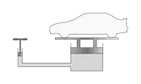 Según el principio de Pascal, la presión es la misma en los dos émbolos, lo que significa que entre el émbolo pequeño (con sección y fuerza ) y en el émbolo grande (con sección y fuerza , correspondiente al peso a izar), se cumple la ecuación:
