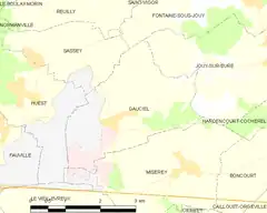- Situación de Gauciel en un mapa de Francia y de comunas limítrofes (en francés)