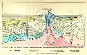 • El principio del uniformismo establece que los procesos geológicos observados en funcionamiento que modifican la corteza terrestre en la actualidad han funcionado de manera muy parecida a lo largo del tiempo geológico.[22] Un principio fundamental de la geología propuesto por el médico y geólogo escocés del siglo XVIII James Hutton es que "el presente es la clave del pasado". En palabras de Hutton: "la historia pasada de nuestro globo debe explicarse por lo que se puede ver que está sucediendo ahora".[23]