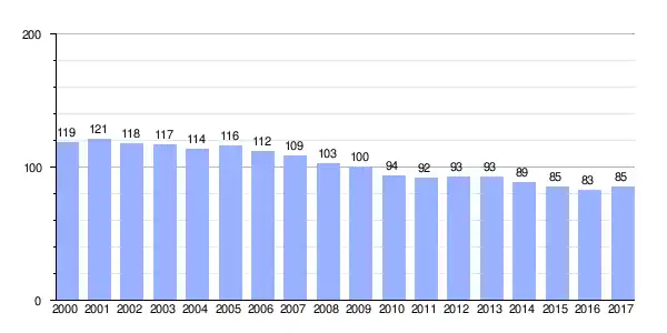 | Gráfica de evolución demográfica de Genestacio de la Vega[2] entre 2000 y 2017 |