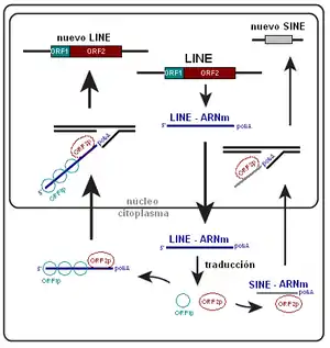 En el genoma humano se detectan más de 280 000 elementos reguladores, aproximadamente un total de 7Mb de secuencia, que se originaron por medio de inserciones de elementos móviles. Estas regiones reguladoras se conservan en elementos no exónicos (CNEEs), fueron nombrados como: SINE, LINE, LTR.[2] Se sabe que al menos entre un 11 % y un 20 % de estas secuencias reguladoras de genes, que están conservadas entre especies, fue formado por elementos móviles.