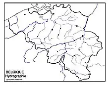 Bélgica esta recorrida por numerosos cursos de agua, la mayoría de ellos pertenecientes a las cuencas del Mosa y el Escalda, que son los principales ríos del país. Muchos de ellos son navegables y hay varios canales de navegación que entrelazan las distintas cuencas.