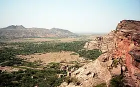 Las tierras altas del interior están atravesadas por uadis, valles secos en invierno. En Yemen no hay ningún curso de agua permanente. Destaca el uadi Hadramaut,[3] que corta las montañas orientales e este a oeste. Desemboca en el desierto de Ramlat al-Sab'atayn y está habitado en sus partes altas, donde las lluvias veraniegas permiten los cultivos. Las oscilaciones de temperatura diurnas oscilan aquí unos 30.oC y están entre las más altas del mundo.