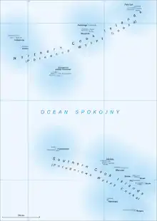 - Atolones coralinos de poca elevación en el norte; Islas volcánicas en el sur