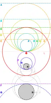 - Dibujar el círculo c con centro M pasando por P (sin etiqueta, es el círculo azul).