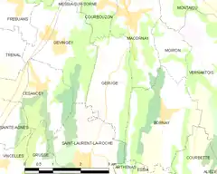 Geruge es una población y comuna francesa, situada en la región del Franco Condado, departamento de Jura, en el distrito de Lons-le-Saunier y cantón de Lons-le-Saunier-Sud.