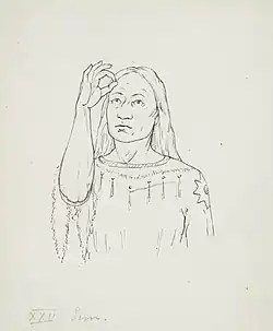 - Mallery, Garrick (1880). Introduction to the Study of Sign Language Among the North American Indians: As Illustrating the Gesture Speech of Mankind. Washington: US Government Printing Office. pp. 20–47.