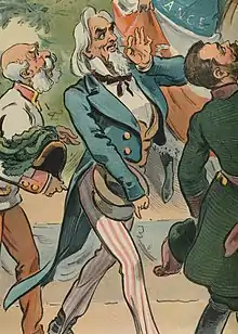 Al año siguiente, los demócratas empezaron a utilizar la frase y el gesto que la acompañaba en apoyo de la campaña de reelección del presidente Martin Van Buren. Nativo de Kinderhook, Van Buren era ampliamente conocido por su apodo, "Old Kinderhook", cuyas iniciales, "OK", estaban ganando terreno como una expresión de aprobación. En la ciudad de Nueva York, los simpatizantes de Van Buren formaron el "OK Democratic Club" y usaron el gesto como signo, con el lema "OK" con el doble significado del eslogan del club, "Old Kinderhook es correcto / es bueno".[10] Tanto la frase como el gesto llegaron a los periódicos de todo el país a través de caricaturas políticas, lo que difundió aún más la expresión. Después de la derrota de Van Buren ante William Henry Harrison, OK fue brevemente satirizado en el sentido de "Ofrul Kalamity" u "Orful Katastrophe".[11]