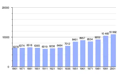 | Gráfica de evolución demográfica de Giffoni Valle Piana entre 1861 y 2001 |