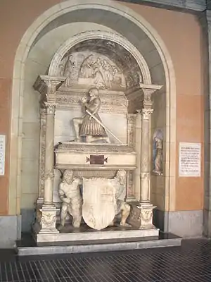 Este monumento sepulcral fue comisionado en vida por él mismo durante su estancia en la ciudad italiana, siendo instalado en una de las Iglesias de Montserrat durante el año 1509. La perla de Cataluña de Gregorio Argaiz constituye la fuente más importante para la historia de la abadía, describiendo el monumento por completo que entonces era él solo una capilla. Por desgracia fue muy dañado en 1811 por los franceses. En 1956 se restauró por Fernando Pau, siendo completado el mensaje y situándolo en el lugar que ocupa ahora.