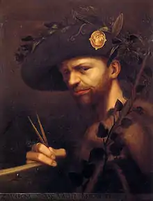 ![]() Autorretrato en traje de abad de la Academia del Valle de Blenio (ca. 1568). Pinacoteca di Brera. | ||