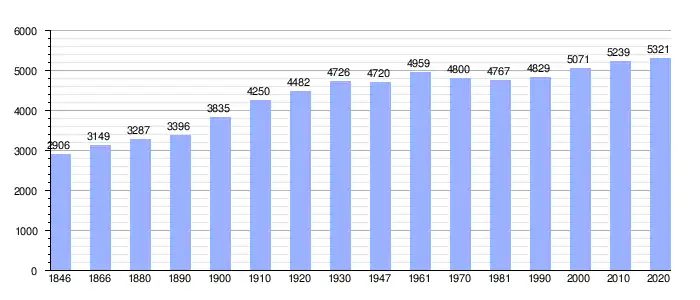 Todos los datos históricos relativos al actual municipio, el siguiente gráfico refleja su evolución demográfica, incluyendo municipios después de efectuada la fusión el 1 de enero de 1977.