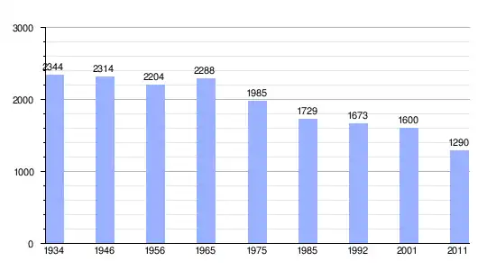 | Gráfica de evolución demográfica de Glavá entre 1934 y 2011 |