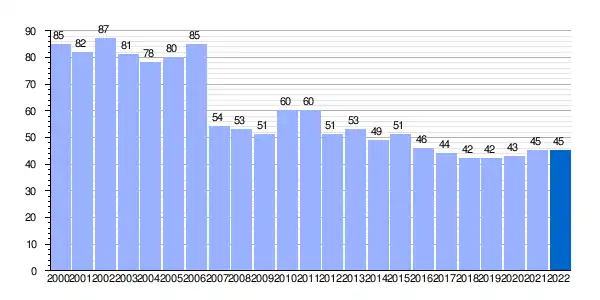 | Gráfica de evolución demográfica de Gomeznarro entre 2000 y 2022 |