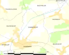 - Ubicación de Gommersdorf y de las comunas limítrofes en el mapa de Francia (enlace roto disponible en Internet Archive; véase el historial, la primera versión y la última).