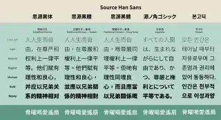 Noto Sans CJK y Noto Serif CJK son versiones de las fuentes Source Han Sans y Source Han Serif, unos tipos de letra desarrollados por Adobe y por Google, que contienen caracteres chinos, Hangul y Kana. Las letras de alfabeto latino y los números están basados en los de las fuentes Source Sans Pro y Source Serif Pro.