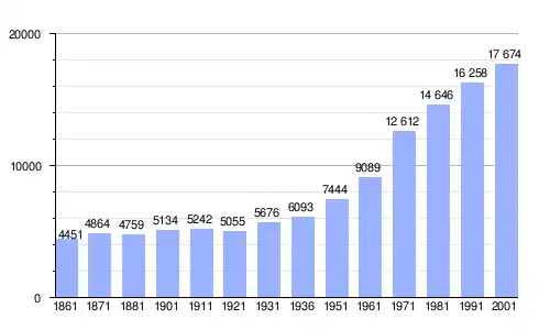 | Gráfica de evolución demográfica de Gorgonzola entre 1861 y 2001 |