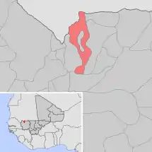 Se encuentra ubicada al oeste del país y al norte de la región de Kayes, en la zona climática del Sahel, cerca de la frontera con Mauritania y la región de Kulikoró.