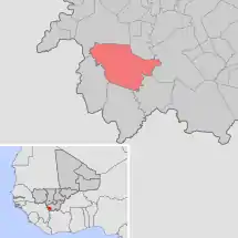 Se encuentra ubicada al suroeste del país, al sur de la capital nacional, Bamako, y cerca de la frontera con Costa de Marfil y República de Guinea.