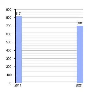 | Gráfica de evolución demográfica de Gouviães e Ucanha entre 2011 y 2021 |