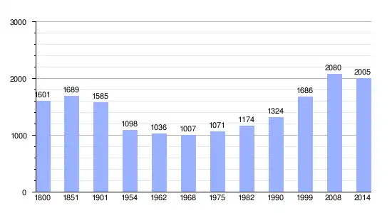 | Gráfica de evolución demográfica de Gouville-sur-Mer entre 1800 y 2014 |