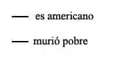 Cálculo de predicados: ∃xAmericano(x) ∧ ∃y murió pobre(y).