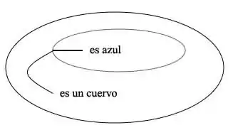 Cálculo de predicados: ∀x(Cuervo(x)→azul(x)) o bien textualmente ¬∃x(cuervo(x)∧¬azul(x)).