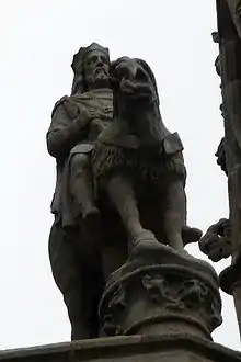 La estatua de Gradlon, entre las dos flechas de la catedral de Quimper