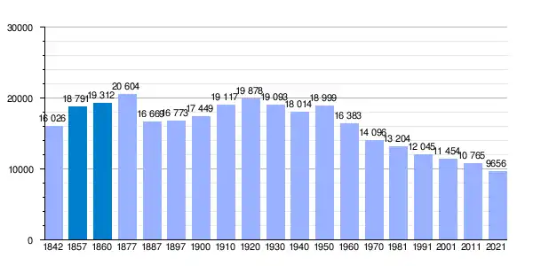 | Gráfica de evolución demográfica de Grado[21] entre 1842 y 2021 |