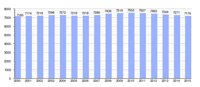Su pirámide de edad muestra un envejecimiento progresivo en el que los mayores de 60 años constituyen el 30 % de la población y las menores de 20 sólo son el 22%.
