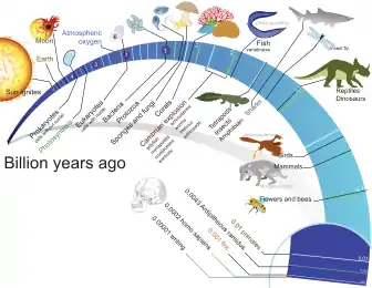 Los primeros organismos fotosintéticos realizaban la fotosíntesis anoxigénica, en la cual no se desprende dioxígeno, tal como hacen en la actualidad las bacterias verdes del azufre y no del azufre, y las bacterias púrpura. Cuando surgieron los primeros organismos capaces de realizar la fotosíntesis oxigénica (las cianobacterias) hace unos 2800 millones de años, se empezó a producir oxígeno molecular (O2) en grandes cantidades.[3] La emisión de dioxígeno (O2) al medio ambiente finalmente provocó una crisis ecológica (extinción masiva) para la biodiversidad de la época, pues el dioxígeno es tóxico para los microorganismos anaerobios dominantes entonces.[4]