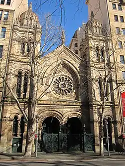 La Gran Sinagoga fue diseñada por el arquitecto Thomas Rowe (que no era judío), y consagrada en 1878. Combina elementos de estilo bizantino y características góticas.[1] Este edificio, a menudo se describe como la "sinagoga catedral" de Australia.