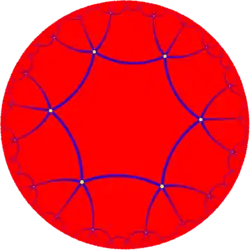 A diferencia del gran icosaedro triámbico, el mediano icosaedro triámbico es topológicamente un poliedro regular de índice dos.[1] Al distorsionar las formas triámbicas en hexágonos regulares, se obtiene como espacio cociente un teselado hexagonal de orden-5 hiperbólico: