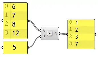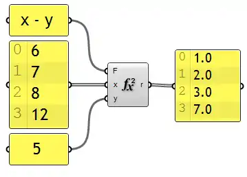 En la imagen que se muestra arriba se aprecian tres componentes flotantes que están unidos a un componente de substracción. Las dos cajas amarillas ubicadas en la izquierda definen una serie de constantes numéricas. En la parte superior se muestran paneles que contienen cuatro números enteros (6,7,8 y 12) mientras que en la parte inferior el panel contiene solamente un número. Estos parámetros flotantes proveen datos al componente de substracción, que resulta en la salida de cuatro valores (6-5=1, 7-5=2, 8-5=3 y 12-5=7). El mismo proceso puede lograrse con expresiones textuales y un componente de evaluación. Este software permite combinar programación visual y escrita en el mismo ambiente de trabajo.