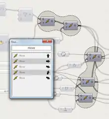 PredictionUna base de datos de la cadena de Márkov almacena las acciones de adición del usuario, esto permite que Grasshopper pueda, eventualmente, predecir con un nivel de precisión razonable los comandos que el usuario podría llamar. Estos comandos son ubicados en una tira de herramientas dentro del área de trabajo.