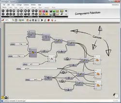 Grasshopper es un lenguaje de programación visual desarrollado por David Rutten en Robert McNell & Associates.[1] Grasshopper es un plug-in que corre dentro de la aplicación CAD Rhinoceros 3D. Los programas son creados arrastrando componentes en el área de trabajo. Los componentes tienen entradas y salidas, las salidas se conectan a las entradas de los componentes subsecuentes. Es utilizado principalmente para programar algoritmos generativos.[2][3] Muchos de los componentes de Grasshopper crean geometría 3D.[ex 1] Los programas pueden también contener otro tipo de algoritmos, tales como los numéricos y textuales[ex 2] audiovisual[ex 3] y aplicaciones hápticas.[ex 4]