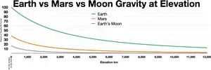 La gravedad de Marte es un fenómeno natural, debido a la ley de la gravedad, o gravitación, por la cual todas las cosas con masa alrededor del planeta Marte son atraídas hacia él. Es más débil que la gravedad de la Tierra debido a la menor masa del planeta. La aceleración gravitacional promedio en Marte es de 3,72076 ms−2 (alrededor del 38% de la de la Tierra) y varía.[1]