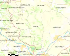 Grazac es una población y comuna francesa, ubicada en la región de Mediodía-Pirineos, departamento de Tarn, en el distrito de Albi y cantón de Rabastens.