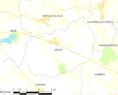 Grazay es una población y comuna francesa, en la región de Países del Loira, departamento de Mayenne, en el distrito de Mayenne y cantón de Mayenne-Est.