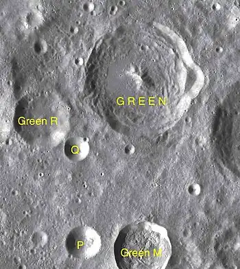 Por convención estos elementos son identificados en los mapas lunares poniendo la letra en el lado del punto medio del cráter que está más cerca de Green.