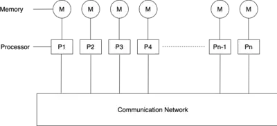 Desde otro punto de vista, en la computación paralela, todos los procesadores pueden tener acceso a una memoria compartida para intercambiar información entre ellos[7] y en la computación distribuida, cada procesador tiene su propia memoria privada, donde la información se intercambia pasando mensajes entre los procesadores.