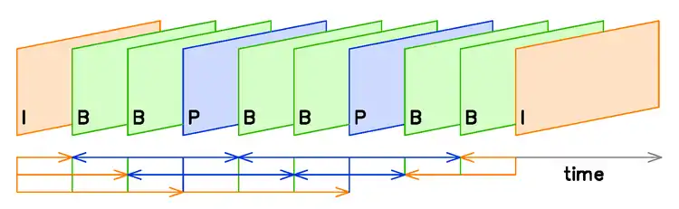 Un GOP siempre empieza con una imagen tipo I. A continuación, le siguen varias imágenes tipo P, en cada caso, con varias imágenes de distancia. Finalmente, los huecos restantes son ocupados por las imágenes de tipo B.