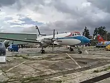 El Grumman Gulfstream I (designación de la compañía G-159) es un avión de negocios bimotor turbohélice. Voló por primera vez el 14 de agosto de 1958. El avión tiene características de diseño similares al Hawker Siddeley HS 748, especialmente el motor Rolls-Royce Dart.[2]