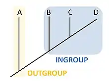 El grupo externo elegido debe estar menos relacionado con el grupo interno de lo que el grupo interno está relacionado consigo mismo. La conclusión evolutiva de estas relaciones es que las especies del grupo externo tienen un antepasado común con el grupo interno, tal antepasado es más antiguo que el antepasado común de todos los miembros del grupo interno. La selección de un grupo externo puede cambiar la topología de la filogenia.[2] Por lo tanto, los filogenetistas generalmente usan más de un grupo externo en los análisis cladísticos. El uso de grupos múltiples es preferible porque proporciona una filogenia más robusta, contrarrestando selecciones mediocres de candidatos de grupos externos y poniendo a prueba la hipotética monofilia del grupo interno.[3][4][5]