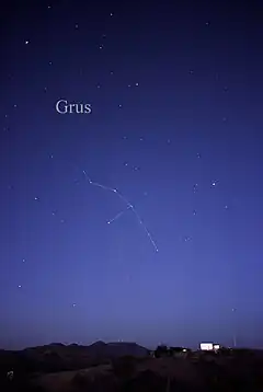 Grus (la grulla), es una constelación austral. Es una de las 20 constelaciones creadas por Pieter Dirkszoon Keyser y Frederick de Houtman entre los años de 1595 y 1597, y su primera aparición es en el libro Uranometria de Johann Bayer en 1603.